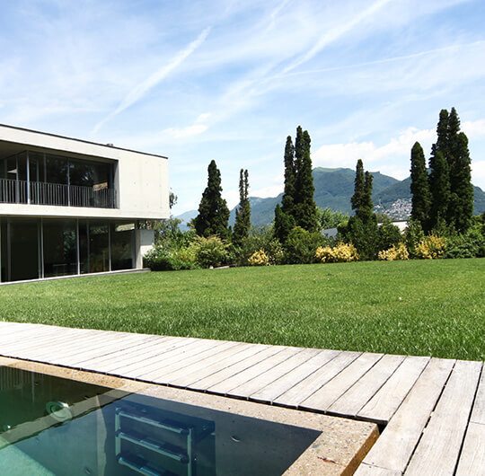 Surrounded by greenery, the villa opens directly onto a sunny terrace with a fabulous heated outdoor swimming pool. The property is set in 2500m² of grounds with a delightful variety of flowers and trees.